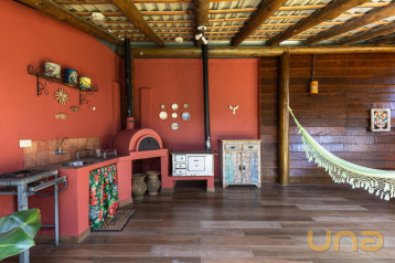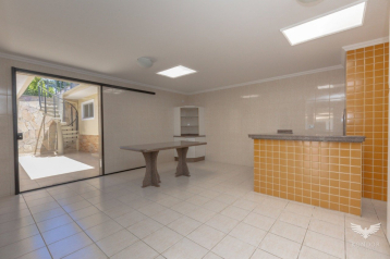Edicula com churrasqueira, despensa, banheiro, área de serviço e canil.