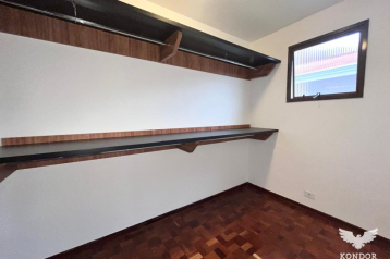 Pavimento superior com ampla suíte com banheira, closet e sacada. Imóvel com piso cerâmico e madeira maciça.