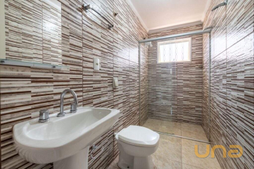 Nos fundos, há banheiro de apoio, depósito para ferramentas e edícula completa, com churrasqueira, cozinha, quarto, banheiro com chuveiro e área de serviço ampla. No piso superior da edícula, sala ampla com banheiro.