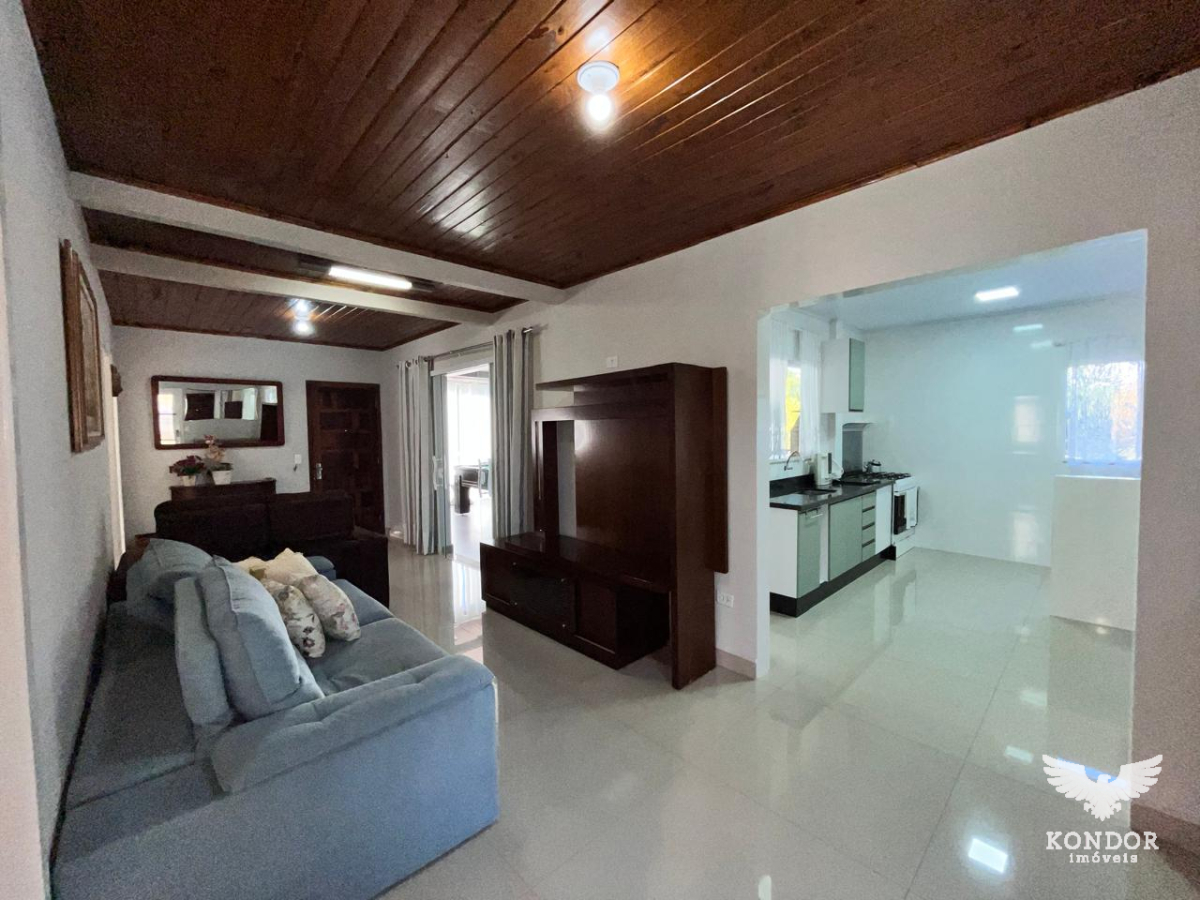 Possui 5 dormitórios (sendo 3 no piso superior e 2 no inferior), salas de estar e jantar, 2 banheiros sociais, cozinha com armários, lavanderia, um belo espaço gourmet com churrasqueira, vaga de garagem coberta e amplo espaço para estacionamento.