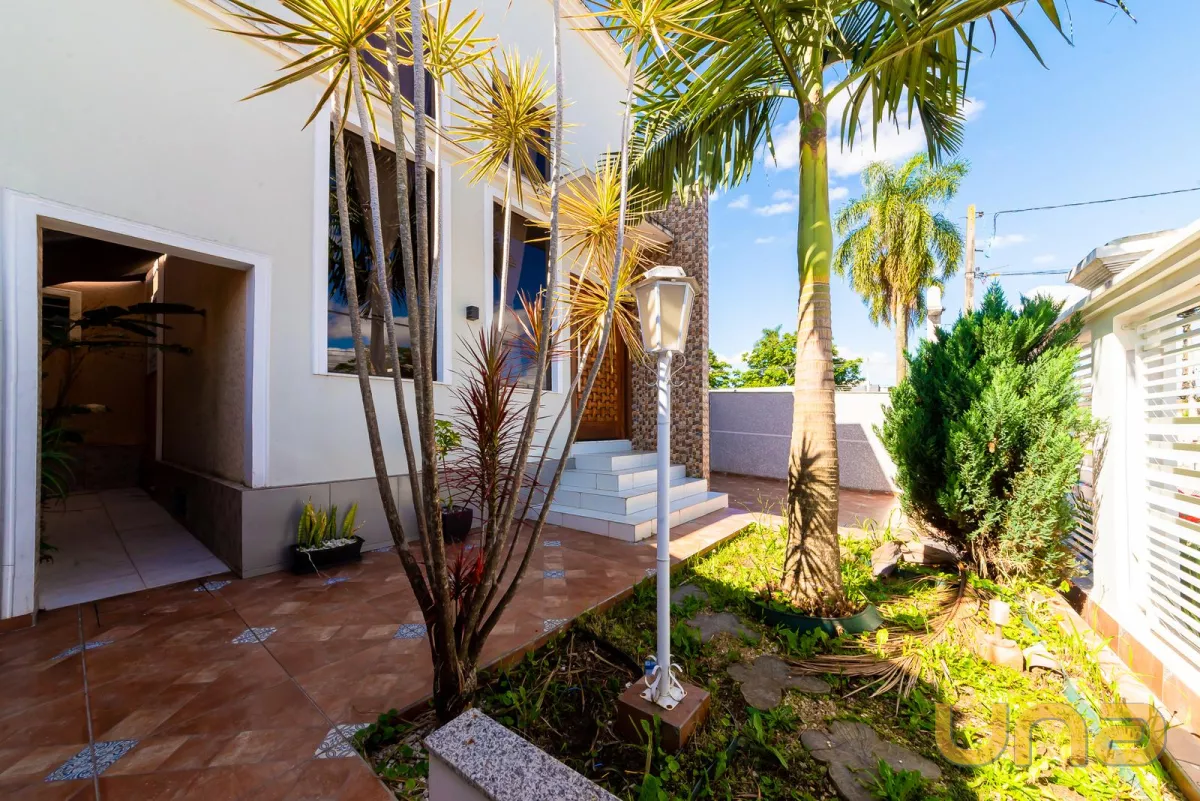 A casa oferece duas vagas de garagem descobertas e um jardim de inverno que traz leveza e integração com a natureza.