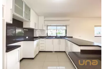 A cozinha planejada é funcional e moderna, equipada com armários, cooktop, coifa e bancada central, ideal para o dia a dia.