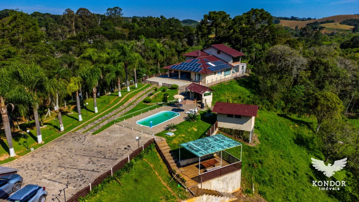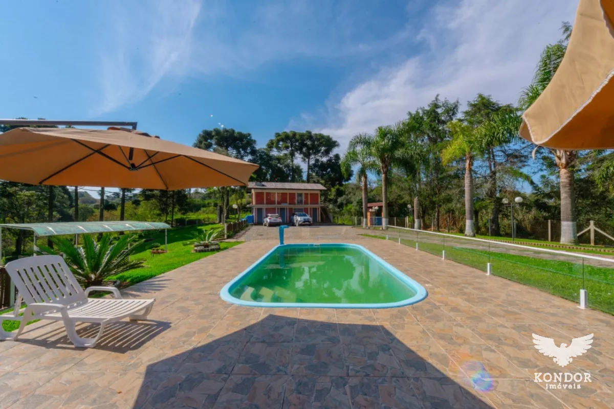 Chácara aconchegante na zona rural de Campo Largo em terreno de 58.950,00 m a 18 minutos do Parque Barigui. Com residência de aproximadamente 280,00 m, com 4 quartos (sendo 1 suíte), sala de estar, jantar e jogos totalmente integradas, cozinha com fogão a lenha, deck com vista para o lago, piscina, quiosque com churrasqueira e ampla área de estacionamento.