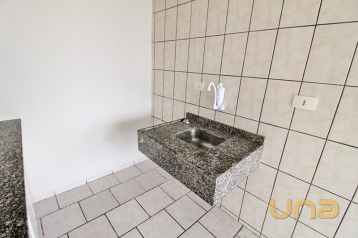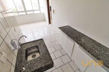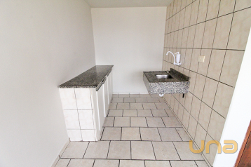 Ótimo apartamento estilo stúdio com piso de cerâmica, cozinha, sacada e banheiro.