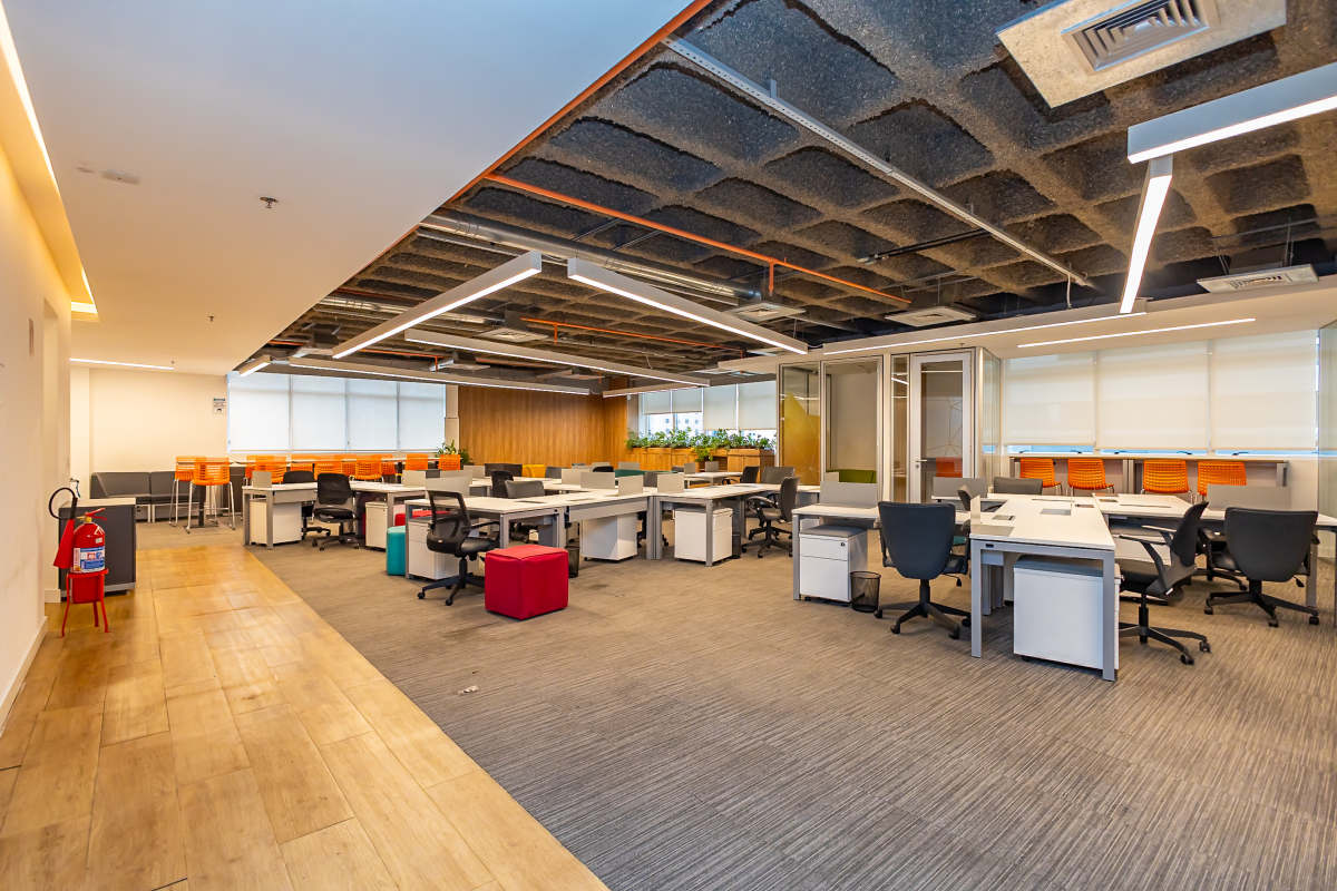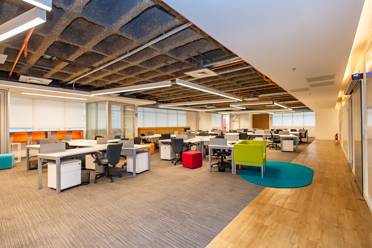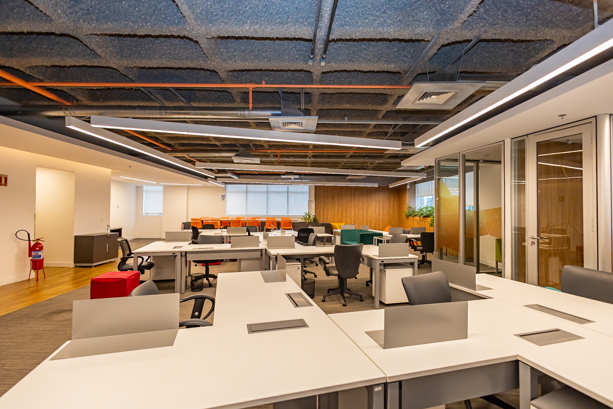 - 2 salas de reunião com tamanhos variados e divisórias acústicas;