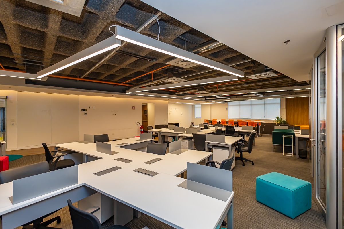 - Vão livre com, aproximadamente, 40 estações de trabalho