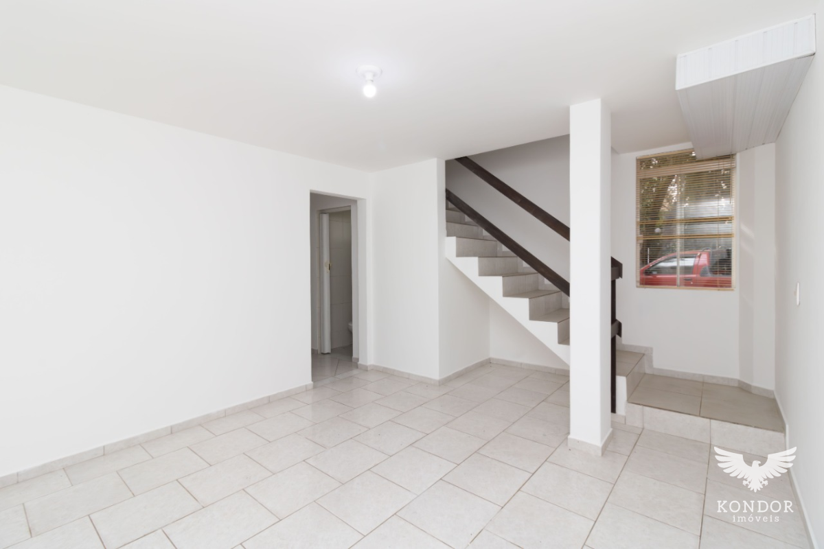 Sobrado em condomínio em Santa Felicidade, medindo 80m², distribuídos em 3 quartos (sendo 2 suítes), banheiro social, sala de estar, cozinha, área de serviço, estacionamento.