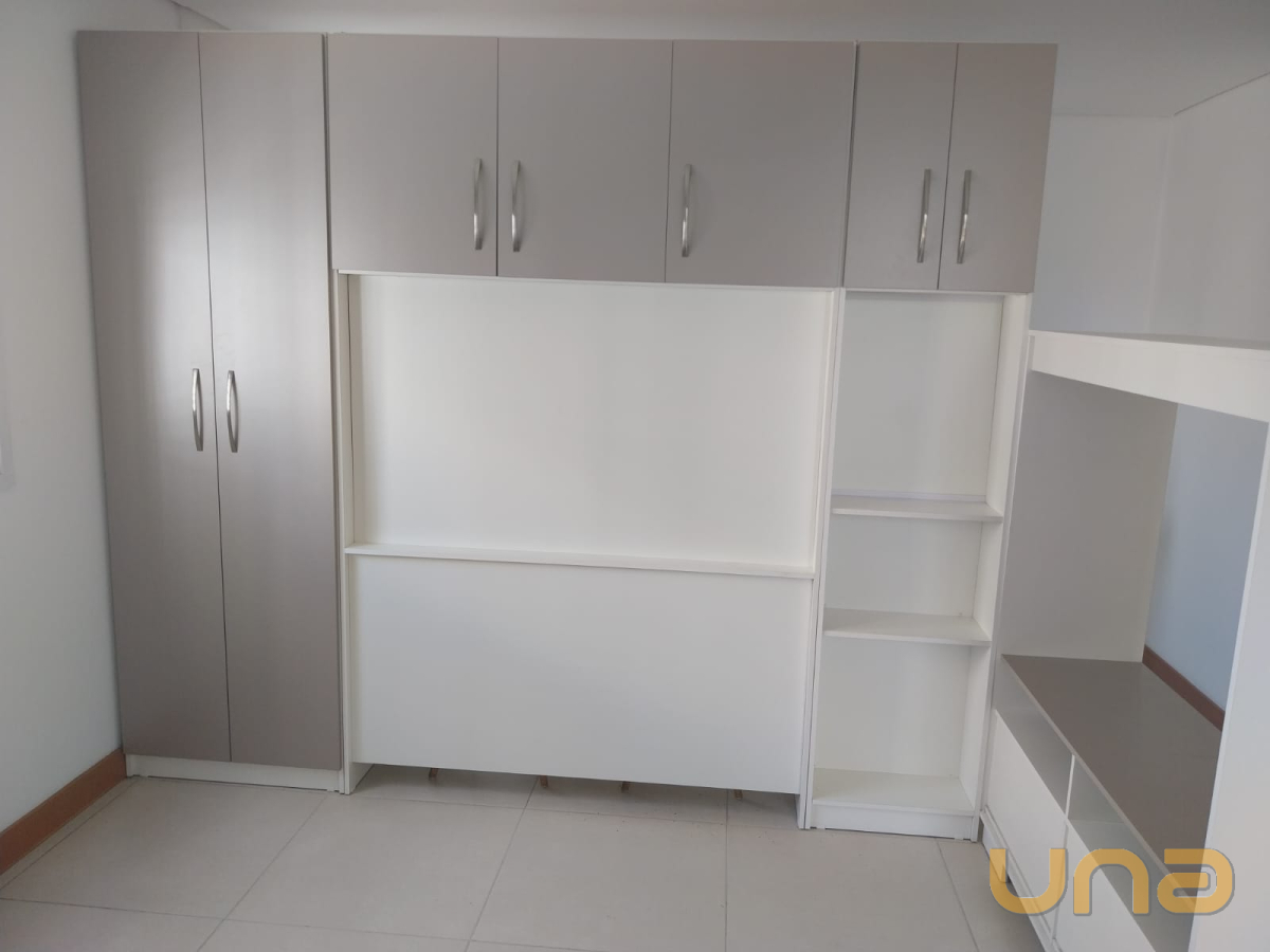 Apartamento Tipo Stúdio com vista definida, tendo a área total de 44,92m², sendo 33,23m² de área útil, contendo sala e quarto conjugado com armário, cozinha com área de serviço conjugada com armários, fogão cooktop por indução e exaustor, banheiro social com box de vidro, aquecimento de caldeira, sacada fechada com churrasqueira.
