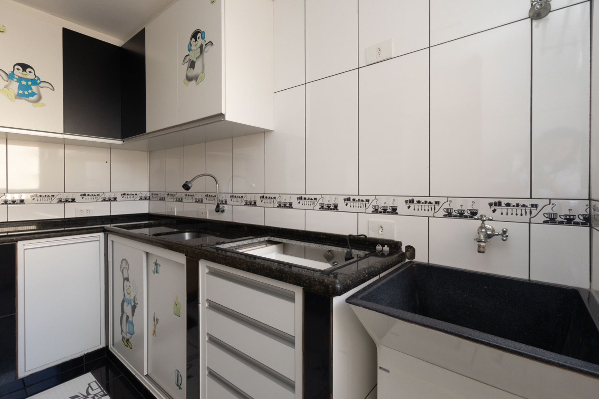Apartamento de 03 quartos com armários planejados, sala para 02 ambientes, banheiro reformado com box e armário, cozinha e área de serviço com armários, e 01 vaga de estacionamento coberto sob n. 201 B.