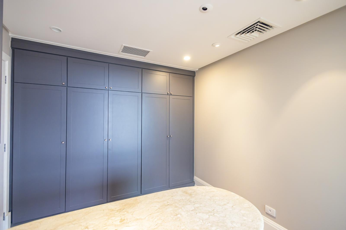Apartamento neoclássico no Edifício Four Seasons, projeto assinado pelo arquiteto Luiz Mori Neto, com interiores do renomado Studio Melina Romano, integrando elegância, minimalismo e biofilia.