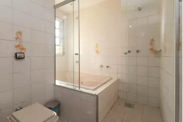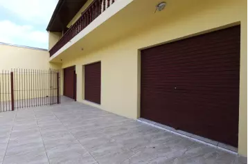 A garagem é coberta e fechada para dois carros, onde há uma segunda churrasqueira a carvão, além de pia com tampo em granito e cuba inox. O imóvel conta ainda com duas vagas de estacionamento descoberto.