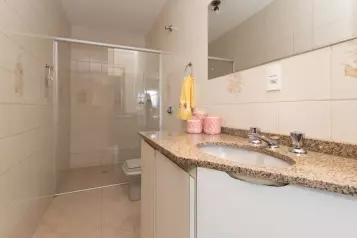 Possui 03 dormitórios, sendo uma suíte com closet e armários embutidos, além de dois dormitórios também com armários. O banheiro social conta com armário e box em vidro.