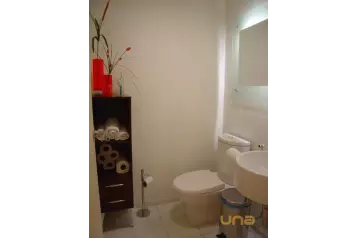 No total são 3 banheiros, sendo 1 adaptado para PNE, corredor com armários e boudoir.