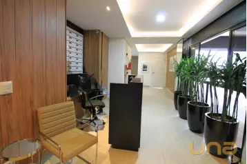 No imóvel permanecem algumas cadeiras e poltronas da recepção, todos os móveis planejados, ar condicionado, persianas, compressor.