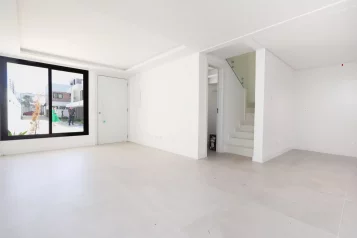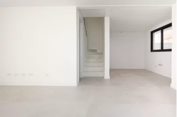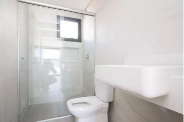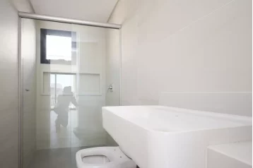 No andar superior, o sobrado oferece 3 suítes, incluindo uma master com closet e um amplo banheiro com cuba dupla. As persianas elétricas embutidas garantem conforto na medida certa. Para completar, um espaço multiuso que atende a diferentes estilos de vida: home office, sala íntima, brinquedoteca… você escolhe.