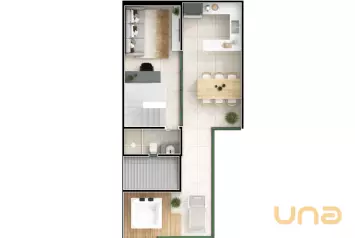 - Cozinha planejada com armários sob medida e excelente espaço integrado à sala de jantar ou copa.