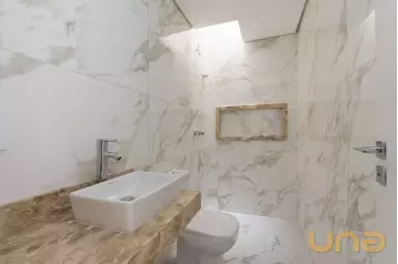 Sobrado com aproximadamente 145 m² de área construída, sendo 99 m² averbados, distribuído em: sala para dois ambientes, lavabo, cozinha com armários e pia com tampa em granito, 05 dormitórios (com possibilidade de utilização de 01 como sala com sacada), sendo 01 suíte com armário e sacada e 01 dormitório com armários planejados, 01 banheiro social.