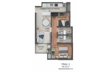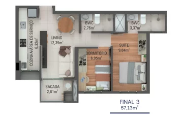 Apartamento no CAMPO COMPRIDO com 69,13m²