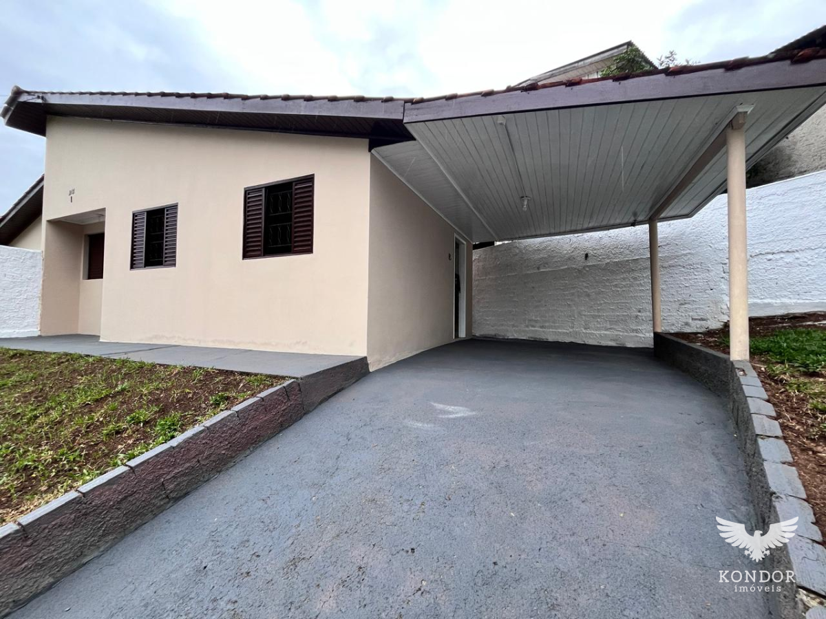 Residência térrea, em alvenaria, com aproximadamente 60 m², com 2 dormitórios, sala e cozinha conjugadas, banheiro social, área de serviço, abrigo para 1 carro e quintal na frente e lateral.