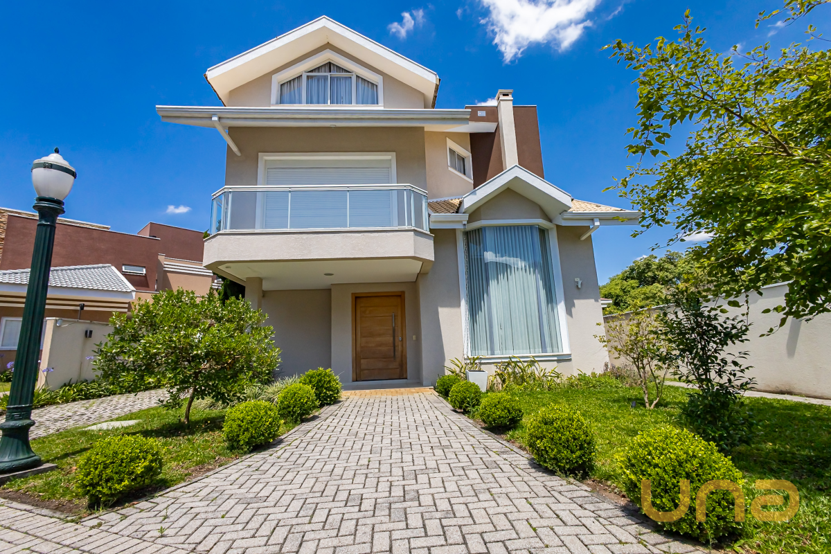 O térreo impressiona com o hall de entrada de pé-direito duplo, seguido por salas amplas de estar e jantar com lareira e iluminação planejada. A cozinha, totalmente equipada, integra-se ao espaço gourmet com churrasqueira, criando um ambiente perfeito para receber. Lavanderia e área para oficina ou dependência completam o pavimento.