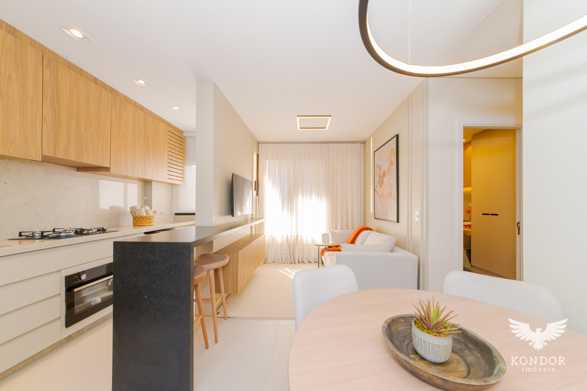 Unidade com 57,26m² de área privativa, com 02 quartos (sendo 01 suíte), sala, sacada com churrasqueira a carvão, banheiro, cozinha, área de serviço e 01 vaga de garagem.