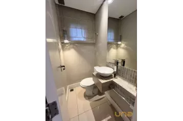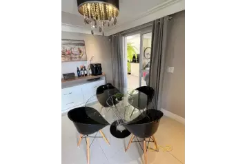 Sobrado com aproximadamente 145 m² de área construída, sendo 99 m² averbados, distribuído em: sala para dois ambientes, lavabo, cozinha com armários e pia com tampa em granito, 05 dormitórios (com possibilidade de utilização de 01 como sala com sacada), sendo 01 suíte com armário e sacada e 01 dormitório com armários planejados, 01 banheiro social.